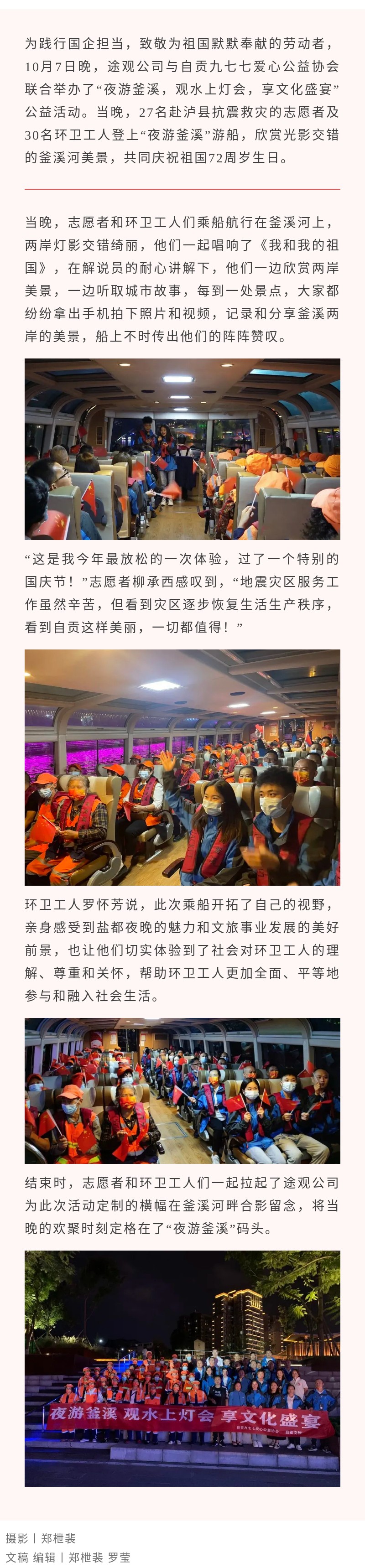“夜游釜溪” 獻(xiàn)愛心,抗震救災(zāi)志愿者、環(huán)衛(wèi)工人國慶免費(fèi)游