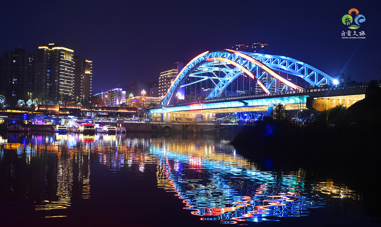 ? ? 從匯興路1號橋碼頭到自流井老街,游覽時長約50分鐘,以自貢傳統(tǒng)彩燈結合現(xiàn)代光影秀的表現(xiàn)形式,全面展現(xiàn)釜溪河“一河三彎四段二十四景”風貌。游客在蜿蜒曲折的釜溪河中乘船游覽,途中看兩岸燈組互動體驗,欣賞裸眼3D大型水秀表演,感受“半城青山半城樓 彩燈輝映碧水流”的城市美景。