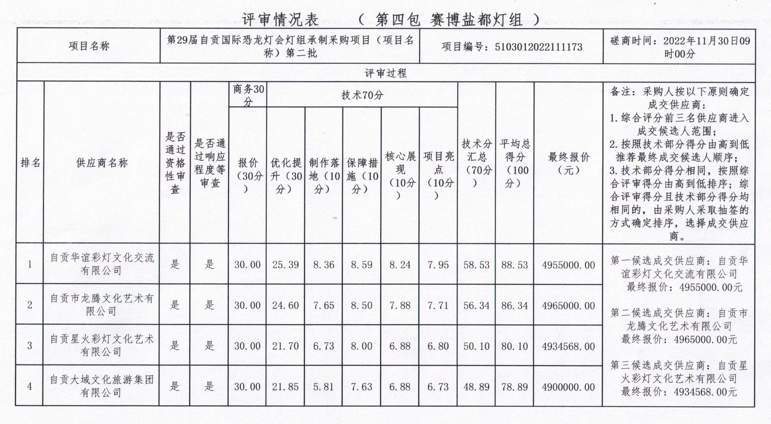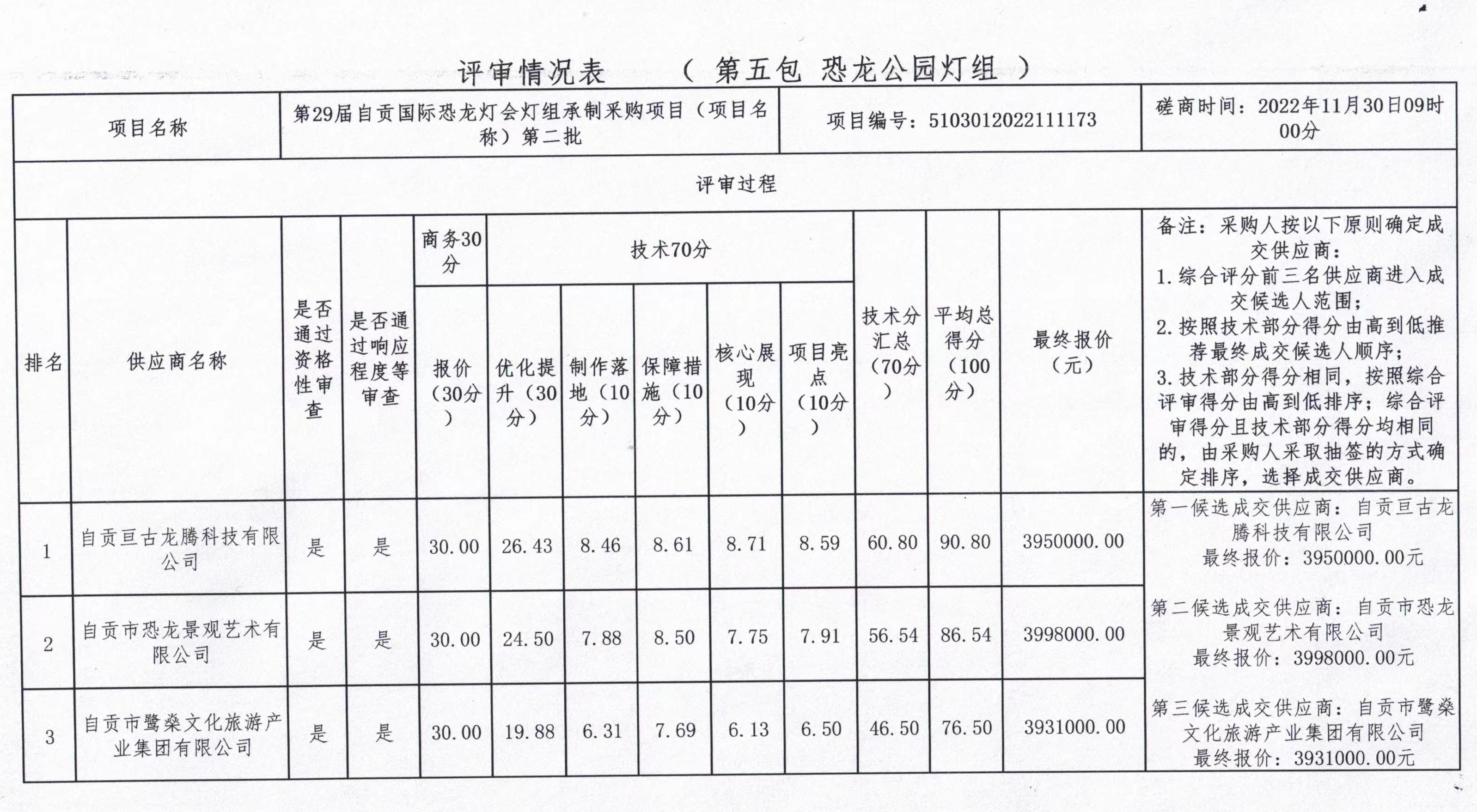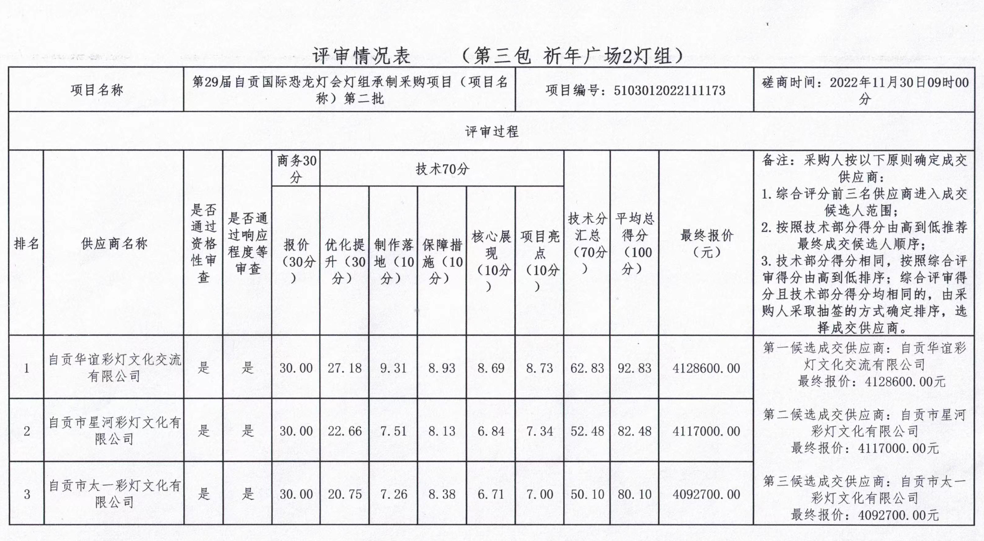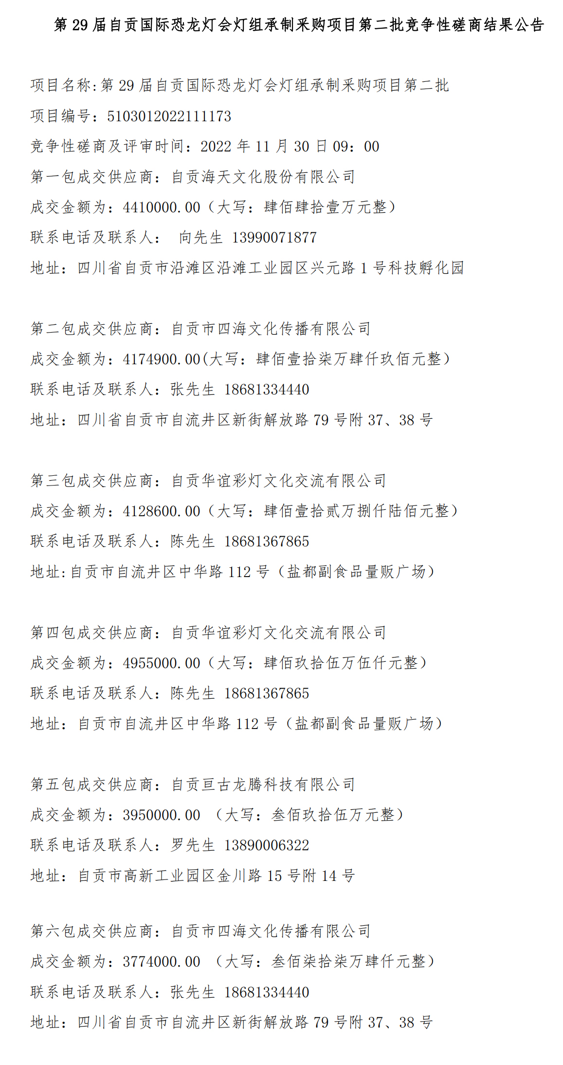 第29屆自貢國際恐龍燈會燈組承制釆購項目(項目名稱)第二批競爭性磋商結(jié)果公告