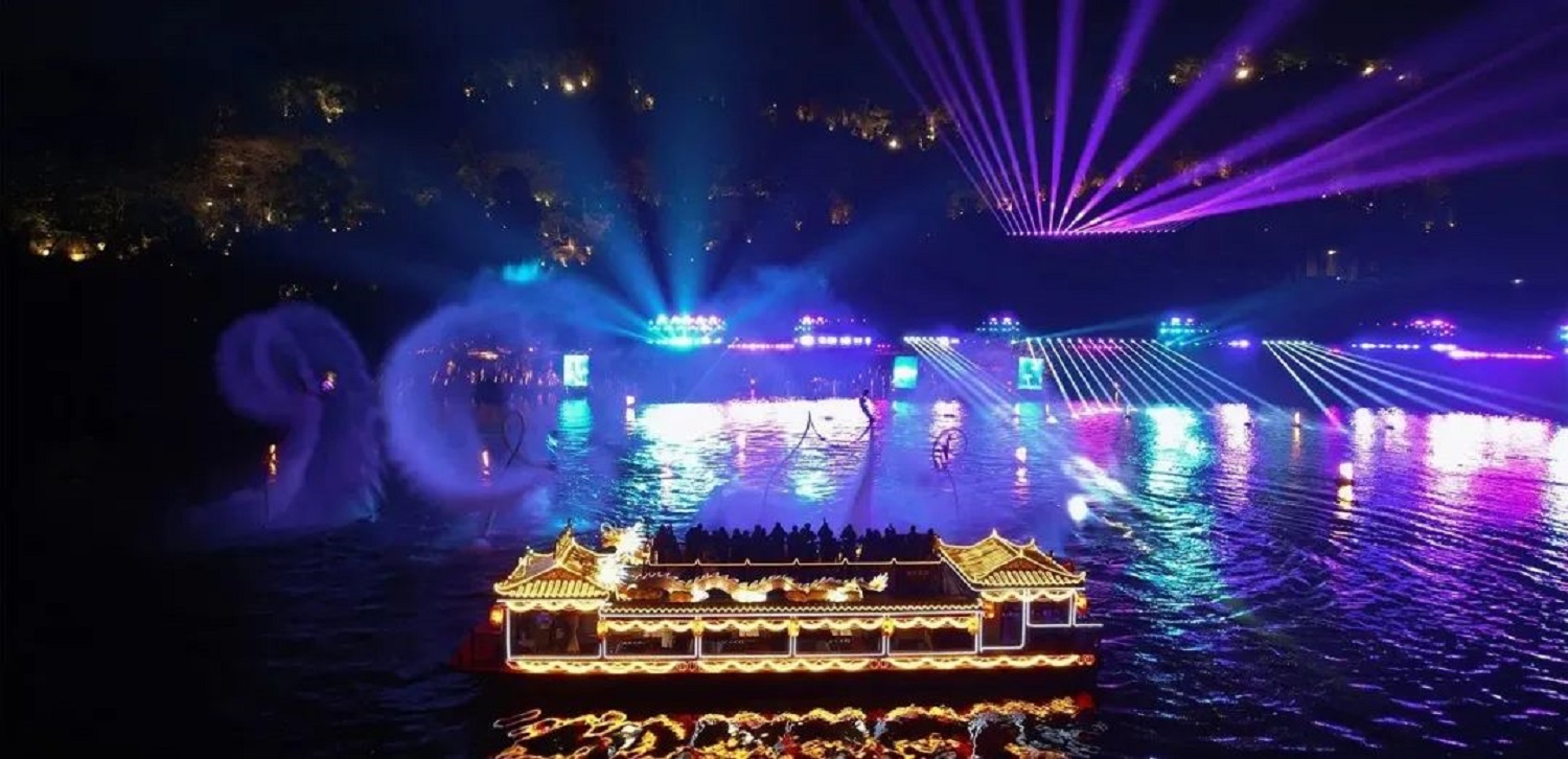 2019年建成投用的“夜游釜溪”是四川省三大“夜游項(xiàng)目”之一,全程約6.2公里,根據(jù)我市“青山兩面合,碧水中間流,花環(huán)綠樹繞,鱗次見重樓”的城區(qū)特點(diǎn),通過傳統(tǒng)彩燈加現(xiàn)代“聲、影、光、電”等新工藝,呈現(xiàn)釜溪河“半城青山半城樓、彩燈輝映碧水流”盛景。讓游客沿河感受自貢鹽業(yè)文化記憶,體驗(yàn)“夜游釜溪”的獨(dú)特魅力和夜色燈火的景象趣味。