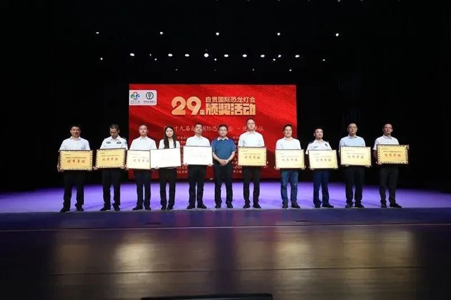 周耘宣讀了《自貢國際恐龍燈會(huì)組委會(huì)關(guān)于表揚(yáng)第29屆自貢國際恐龍燈會(huì)先進(jìn)集體和先進(jìn)個(gè)人的通報(bào)》,18個(gè)優(yōu)秀單位、35個(gè)先進(jìn)單位、5個(gè)優(yōu)秀展出企業(yè)和151名先進(jìn)個(gè)人獲獎(jiǎng)。相關(guān)領(lǐng)導(dǎo)分別向獲獎(jiǎng)單位和個(gè)人代表頒發(fā)了證書。