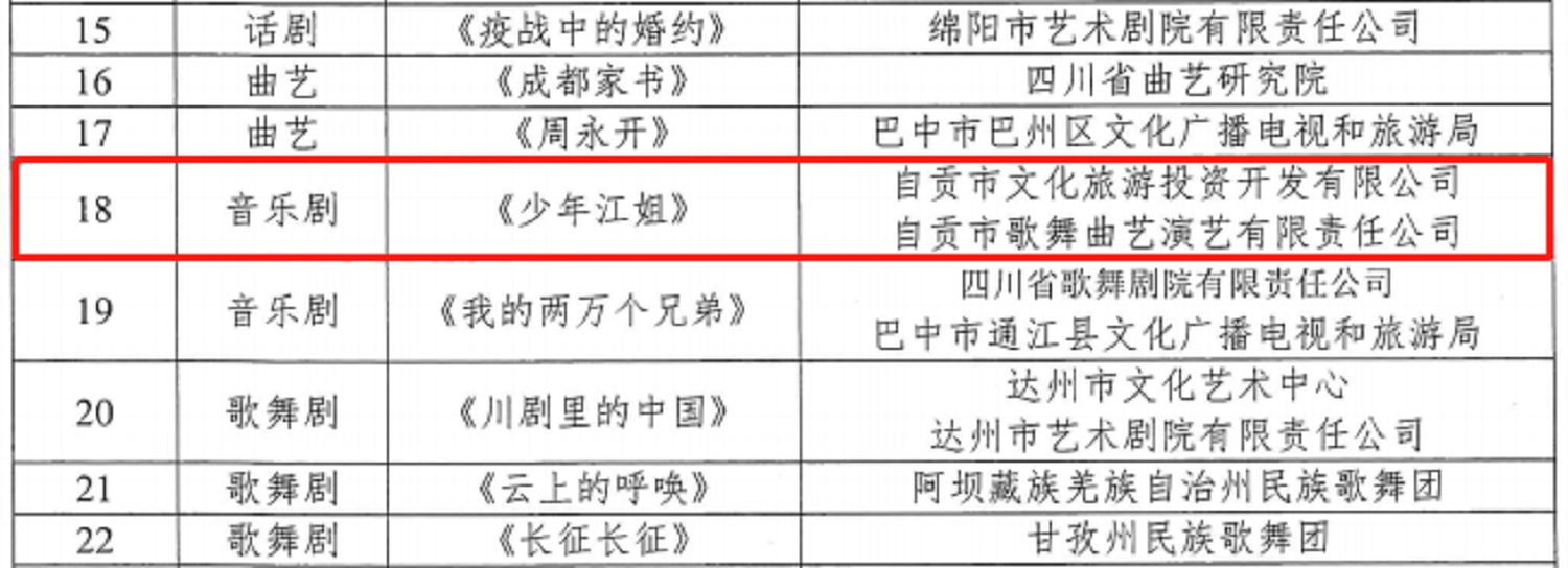 7月12日,四川省文化和旅游廳公布了第三屆四川藝術(shù)節(jié)精品劇目展演暨第五屆四川文華獎(jiǎng)劇目初評(píng)入圍名單,由自貢文旅投公司出品、自貢市歌舞曲藝演藝有限責(zé)任公司制作的原創(chuàng)音樂(lè)劇《少年江姐》成功入圍參演參評(píng)。這也是繼音樂(lè)劇《紅梅花開》榮獲國(guó)家藝術(shù)基金立項(xiàng)扶持后,自貢文旅投公司再次推出的江姐系列文藝精品力作。