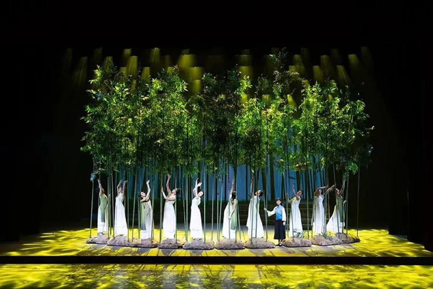 在90分鐘的演出中,隨著燈光道具、旋轉(zhuǎn)舞臺不停變換,觀眾仿佛穿梭時空,時而邁入天車林立的鹽場,時而走進艱辛勞作的襪廠,時而踏入江家灣的竹林。隨著劇情的推進,演員們的演唱也時而婉轉(zhuǎn)細膩,時而鏗鏘有力,時而大氣澎湃,令觀眾大呼過癮。當晚演出結(jié)束時,全場掌聲經(jīng)久不息。