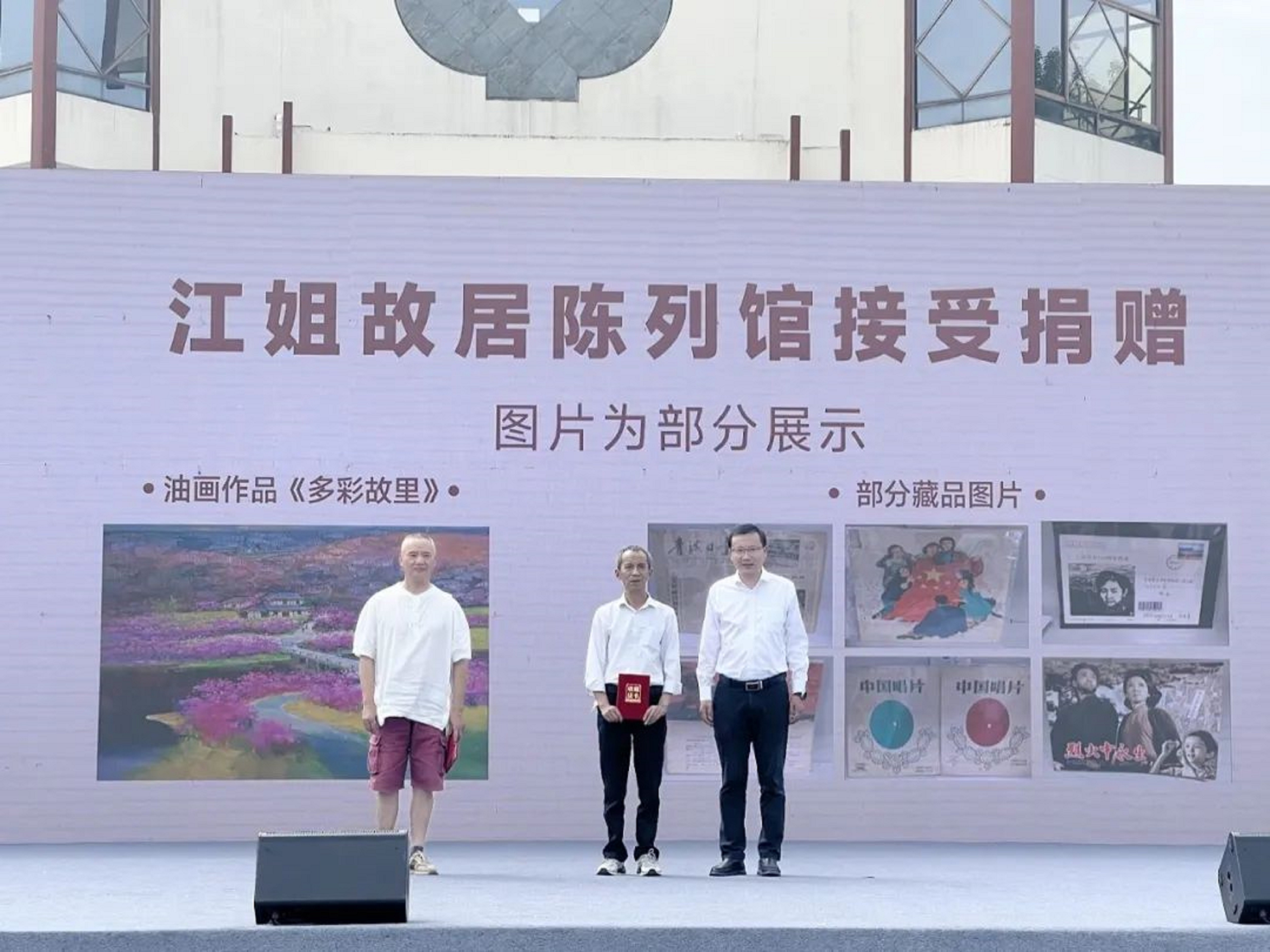 捐贈(zèng)儀式上,自貢文旅投公司副總經(jīng)理盧晨蕓還代表江姐故居陳列館接收了多名收藏家的捐贈(zèng),共收到江姐誕辰100周年實(shí)寄紀(jì)念封、60年代歌劇《江姐》唱片、油畫(huà)《多彩故里》等40余件珍貴藏品。