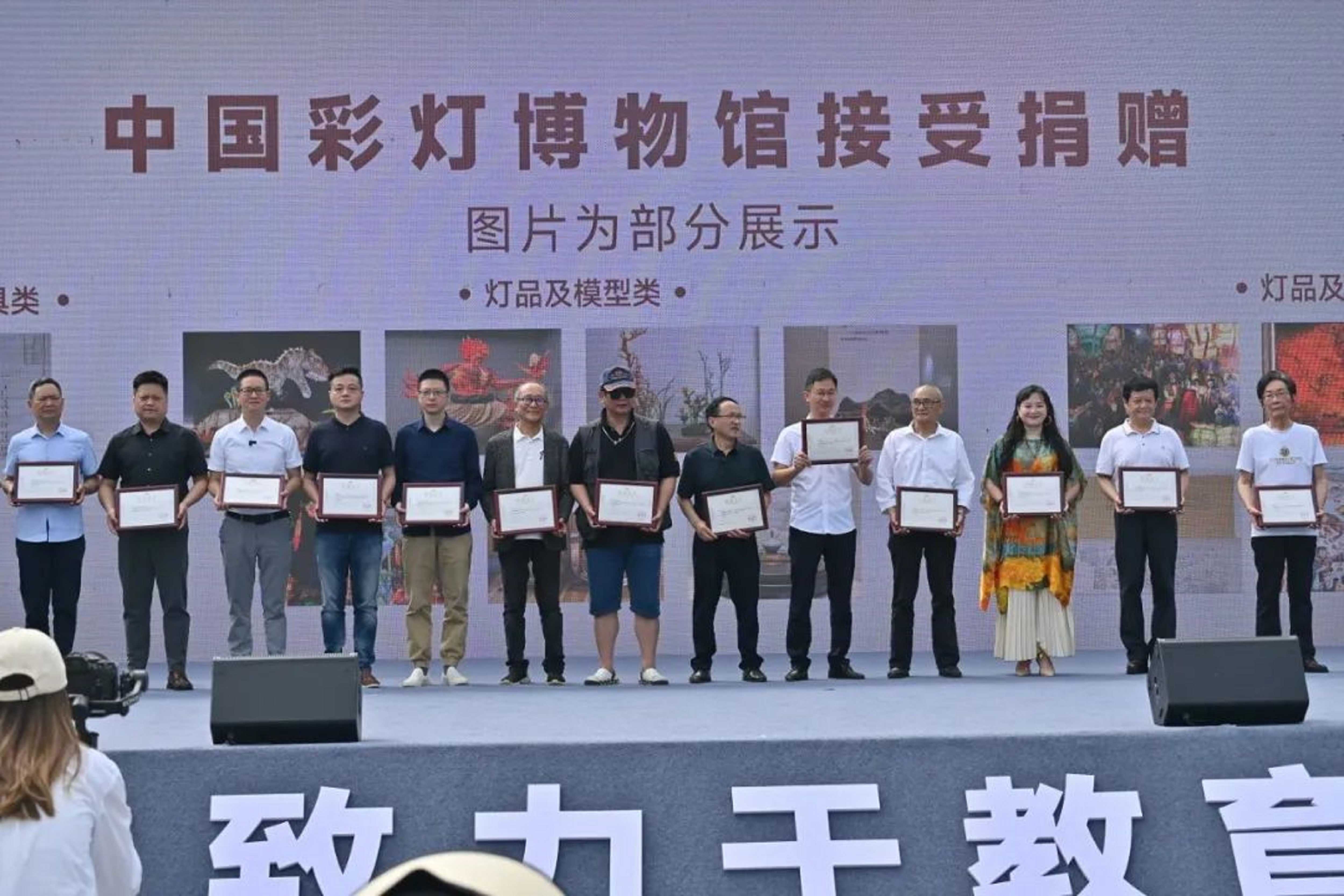活動(dòng)上,舉行了文物/展品捐贈(zèng)儀式,自貢文旅投公司總經(jīng)理聯(lián)系人曾杰作為代表上臺(tái),向中國(guó)彩燈博物館捐贈(zèng)了燈組《雀之靈》。