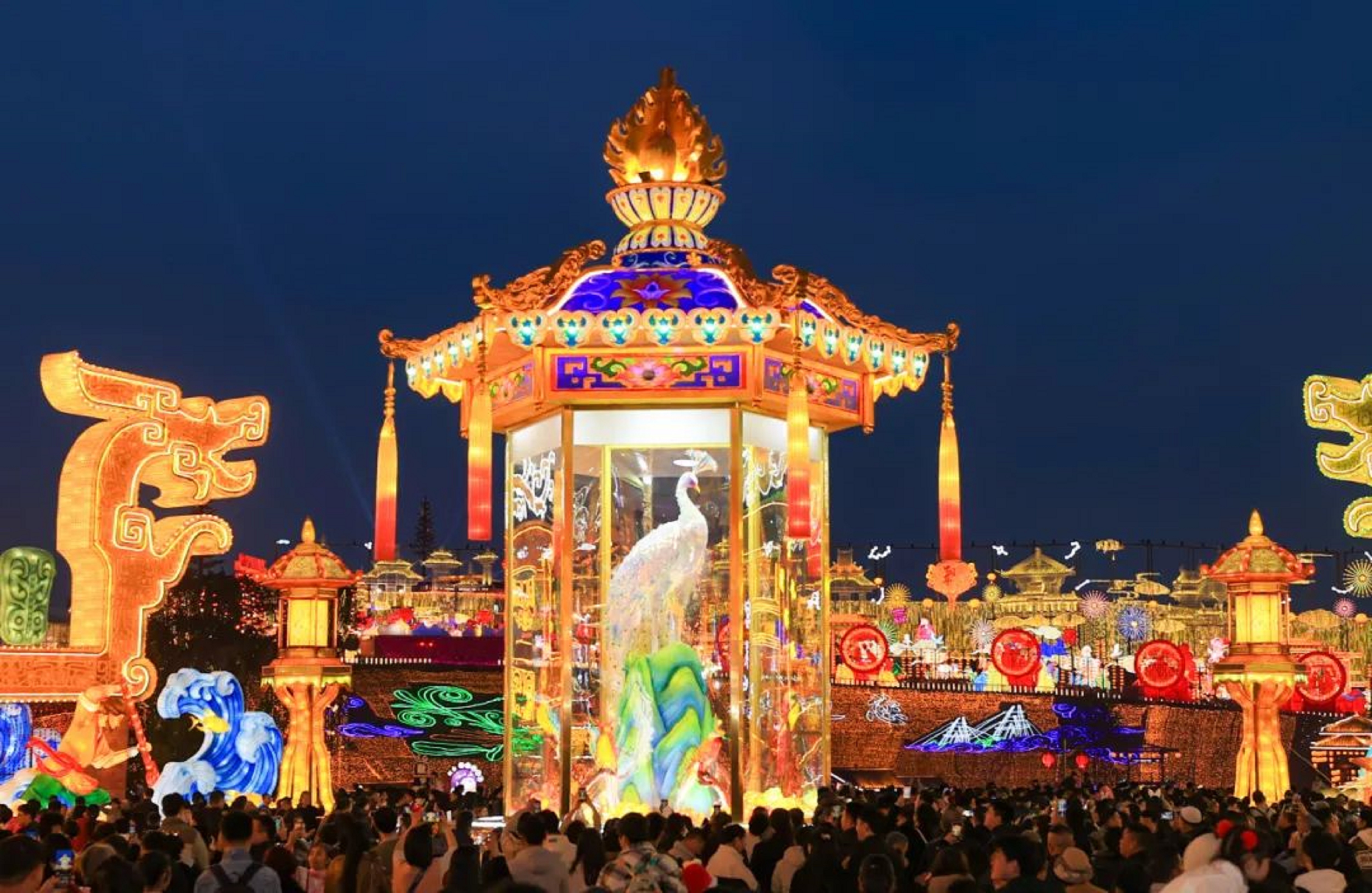 隨著今年“五一”假期的圓滿落幕,中華彩燈大世界暫停開(kāi)放。今年第三十屆自貢國(guó)際恐龍燈會(huì)上千組璀璨奪目的彩燈為游客留下了深刻的印象,更有不少燈組“出圈”,成為各大社交媒體上的新寵。其中,一盞精美絕倫、五光十色的“孔雀燈”吸引了無(wú)數(shù)網(wǎng)友的關(guān)注和點(diǎn)贊。5月16日,這盞“網(wǎng)紅”燈組被自貢文旅投公司捐贈(zèng)給中國(guó)彩燈博物館,將在自貢彩燈精品廳作為永久展品繼續(xù)向公眾展示。