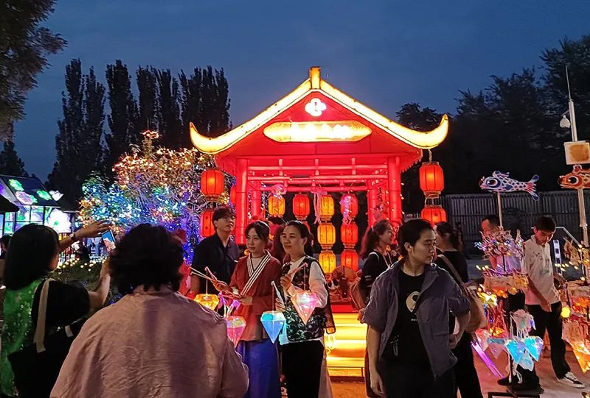 燈會(huì)不僅有絢爛的彩燈,還有150余家特色商鋪,涵蓋老字號(hào)、非遺、文創(chuàng)、餐飲美食等多個(gè)品類,同時(shí),融入非遺DIY、猜燈謎、詩詞挑戰(zhàn)等豐富多彩的互動(dòng)活動(dòng),舉辦歌舞、戲劇、國潮文化等100余場文化活動(dòng),打造集“夜市、夜游、夜秀”于一體的夜間消費(fèi)新場景。