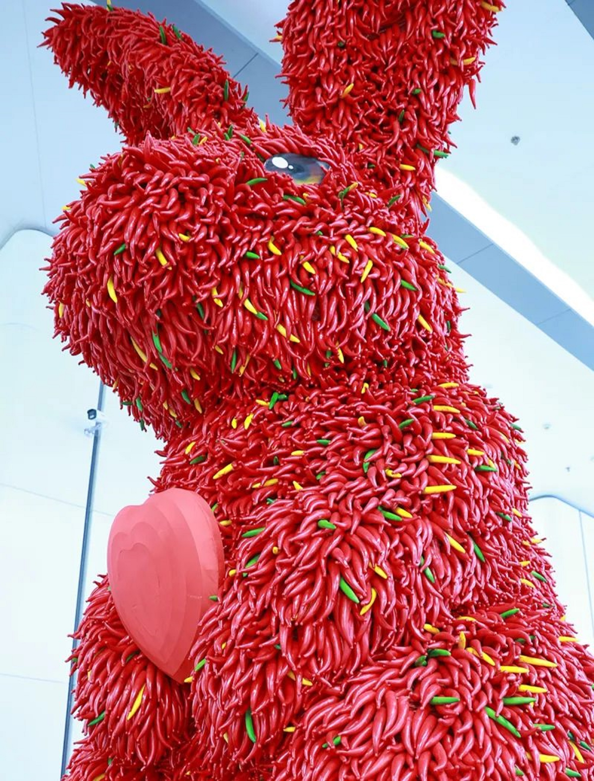 據(jù)悉,“辣椒兔”燈組由自貢文旅發(fā)展集團(tuán)旗下自貢燈會(huì)展出有限公司精心設(shè)計(jì)制作,高6米、寬5米,采用800斤仿真辣椒進(jìn)行裝飾,以火紅的辣椒巧妙構(gòu)成兔子形象,兔子手捧愛心,整體造型呆萌可愛。