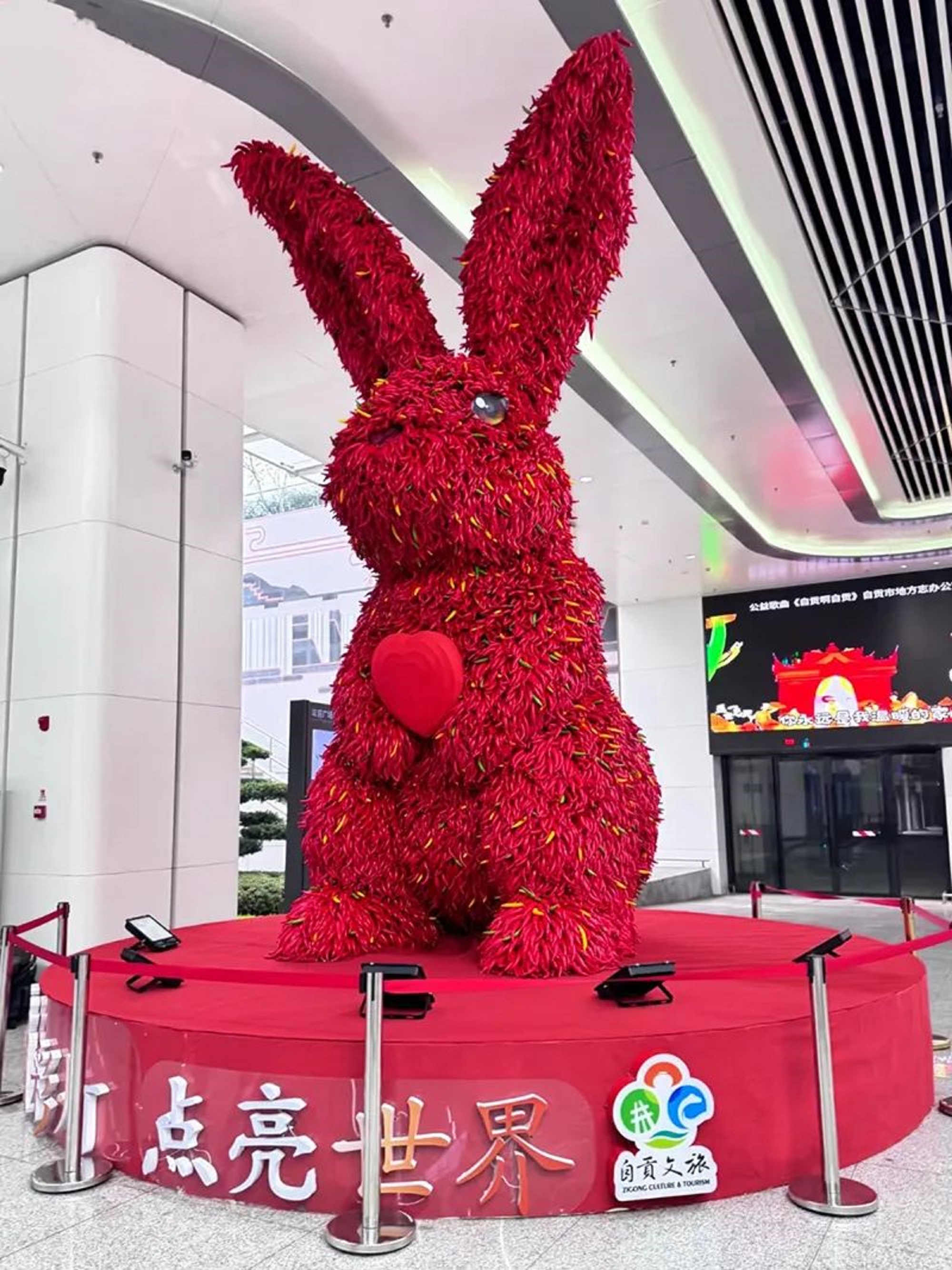 近日,一座高6米的巨型辣椒兔燈組“現(xiàn)身”自貢高鐵站,吸引了眾多旅客駐足打卡,成為站內(nèi)一道亮麗的風(fēng)景線。