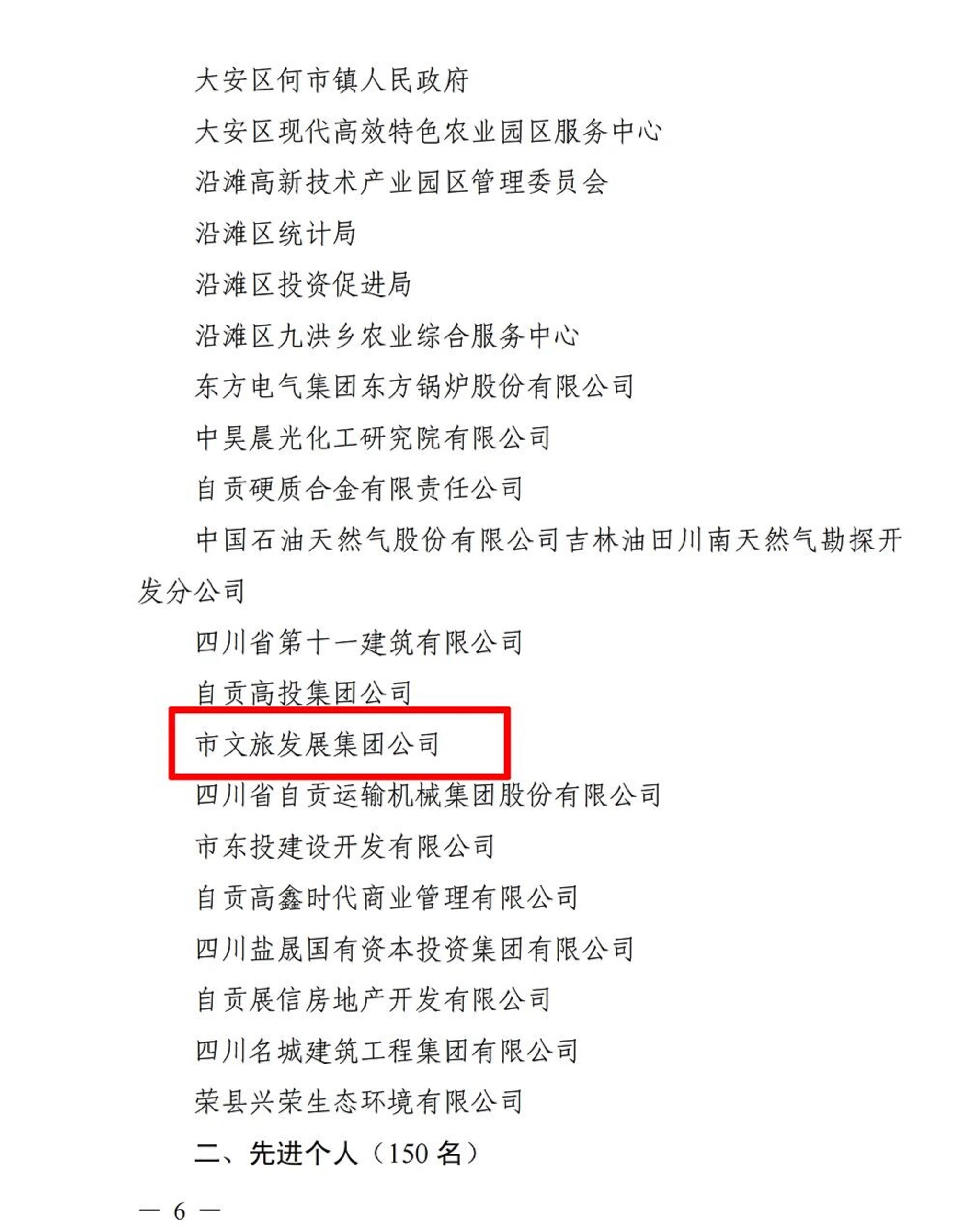 近日,中共自貢市委、自貢市人民政府發(fā)布《關(guān)于表彰自貢市 “拼經(jīng)濟搞建設(shè)” 先進集體和先進個人的決定》,對全市80個先進集體、150名先進個人予以表彰。自貢市文旅發(fā)展集團有限公司獲評自貢市“拼經(jīng)濟搞建設(shè)”先進集體。